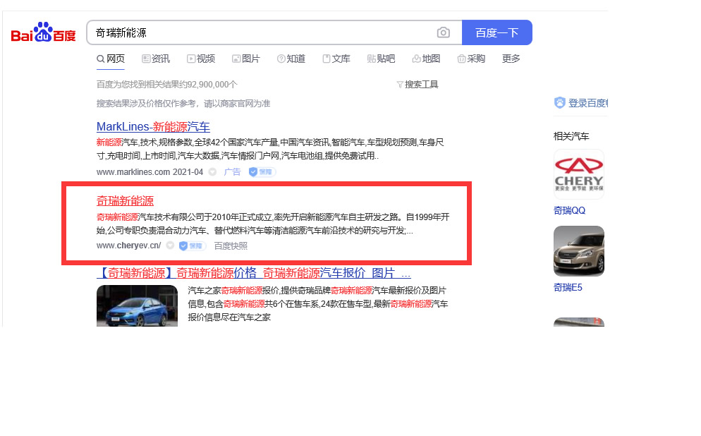 客户公司名称:奇瑞新能源官网